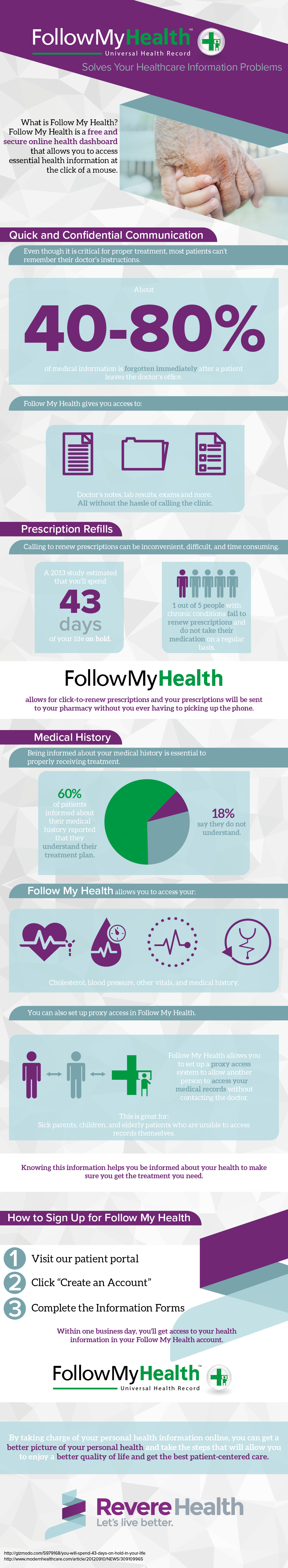 Getting access to your medical records has never been easier. Follow My Health allows individuals to create an account and gain access to Revere Health’s many medical benefits. Research has shown that individuals who meet with a doctor forget up to 80 percent of what they were just instructed from their doctor. Here at Revere Health we want to make sure every one of our patients remembers what their doctor told them, so they can get healthy faster.